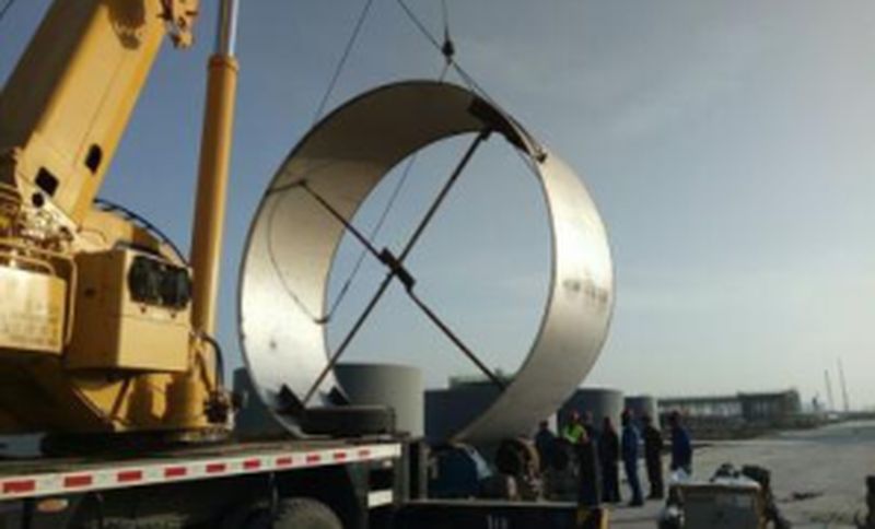 该支撑主要用在大型超限设备筒体卷制、焊接、校圆完毕后防止筒体变形,在筒节边缘及内部打防变形支撑(包括一字型、十字型、米字型)。该支撑也适用于现场制造需要从制造厂分段发往现场,在发往现场运输过程中为防止变形采用打支撑的方式。在起吊转运过程中为防止筒体由于本身自重加上吊具牵引力产生的变形,需要打支撑。筒节之间组对过程中,由于筒体直径很大,容器外壁很薄,将筒体分段放置在滚轮架上时,通过滚轮架的转动加上筒体自重筒体已变形,在焊接组对过程中无法保证直线度,这个过程也需要筒体内部打支撑,如下图所示。